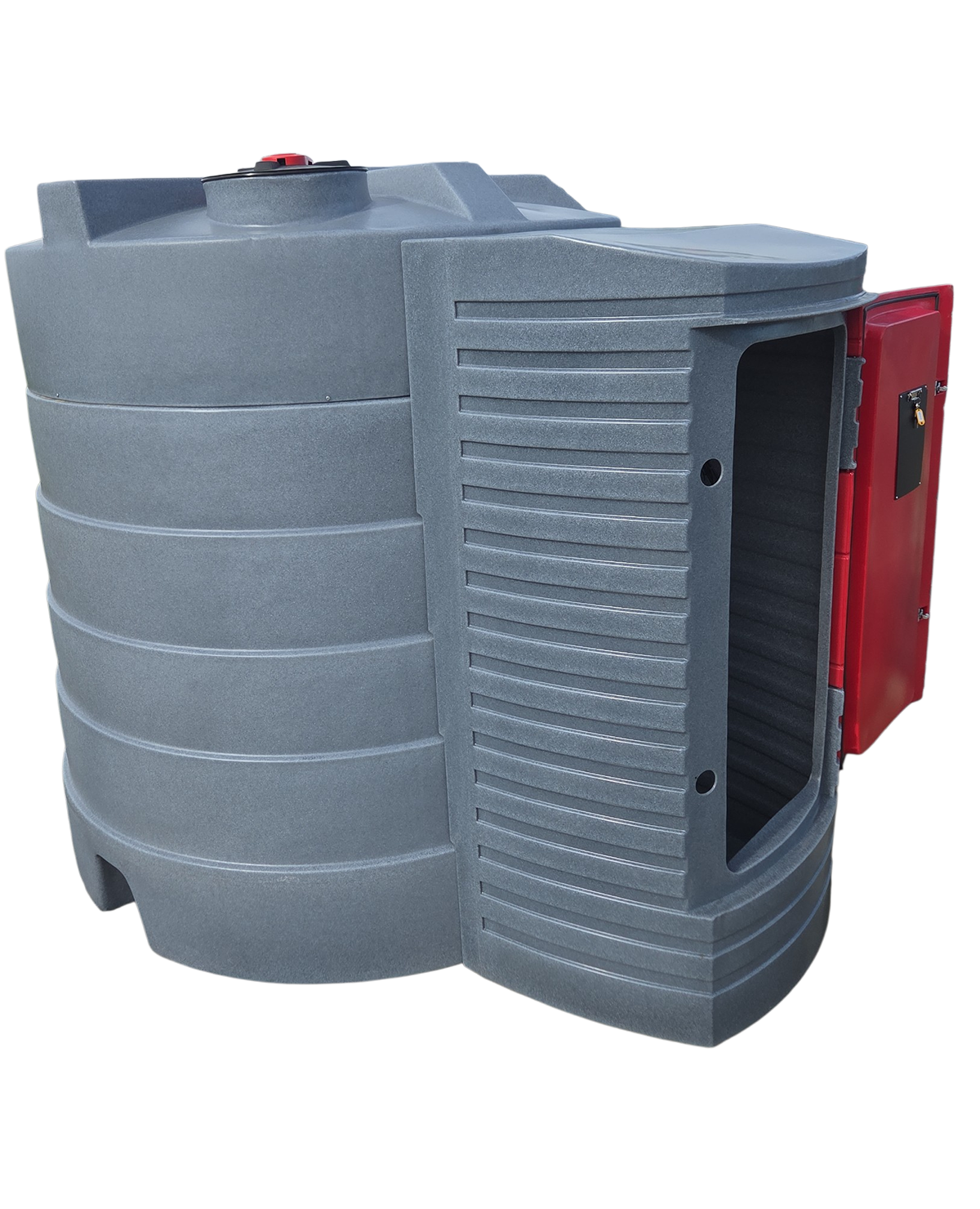 Spremnici od 5000 i 9000 litara građeni su za ozbiljne potrebe, veća gospodarstva, transportne tvrtke i industrijske pogone kojima cisterna dolazi jednom, a gorivo traje tjednima. Dvoplašna konstrukcija od UV-stabiliziranog PE-HD polietilena prema normi PN-EN 13341 štiti gorivo i okoliš. Zaključani kabinet s dvostrukim bravama čuva opremu od neovlaštenog pristupa.